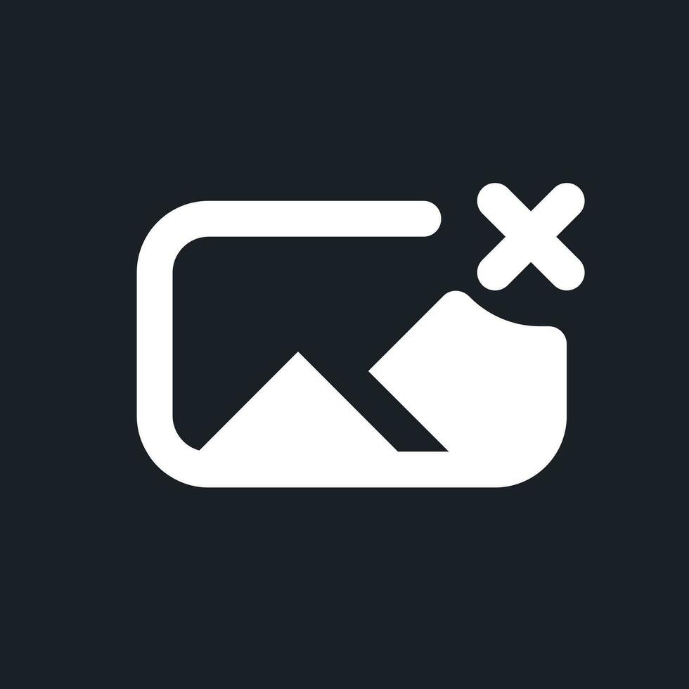 Remove photo file white pixel perfect solid ui icon. Deleting picture. Image and cross mark. Silhouette symbol for dark mode. Glyph pictogram on black space for web, mobile. Vector isolated image Pro Vector
