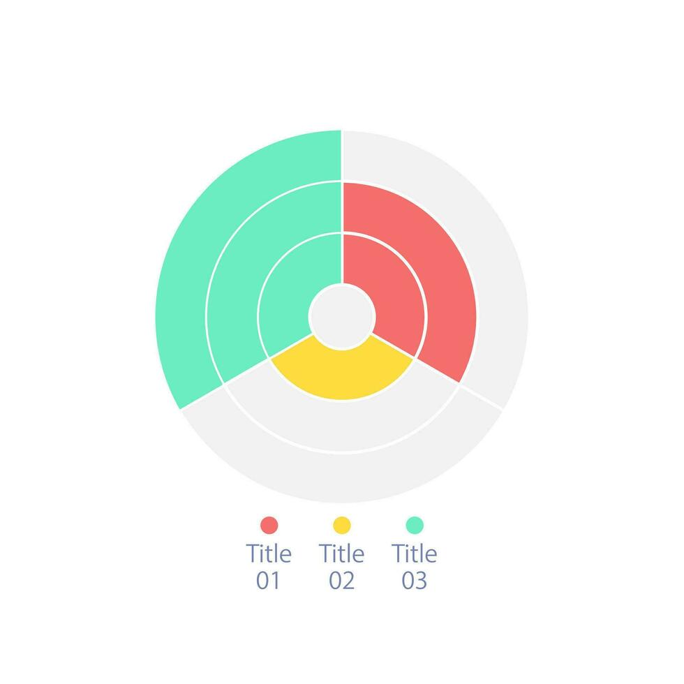 Radial infographic diagram design template with three rings. Market division. Editable circular infochart with different values. Visual data presentation Pro Vector
