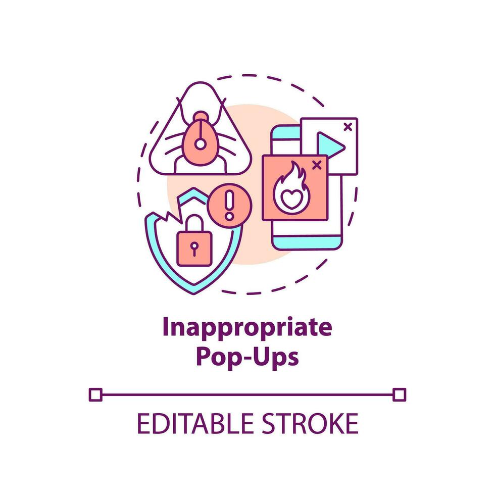 Inappropriate pop-ups concept icon. Spam advertisements. Hacking attack. Malware abstract idea thin line illustration. Isolated outline drawing. Editable stroke Pro Vector
