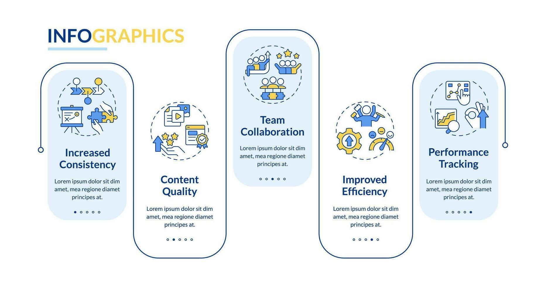 Editorial calendar benefits rectangle infographic template. Data visualization with 5 steps. Editable timeline info chart. Workflow layout with line icons Pro Vector
