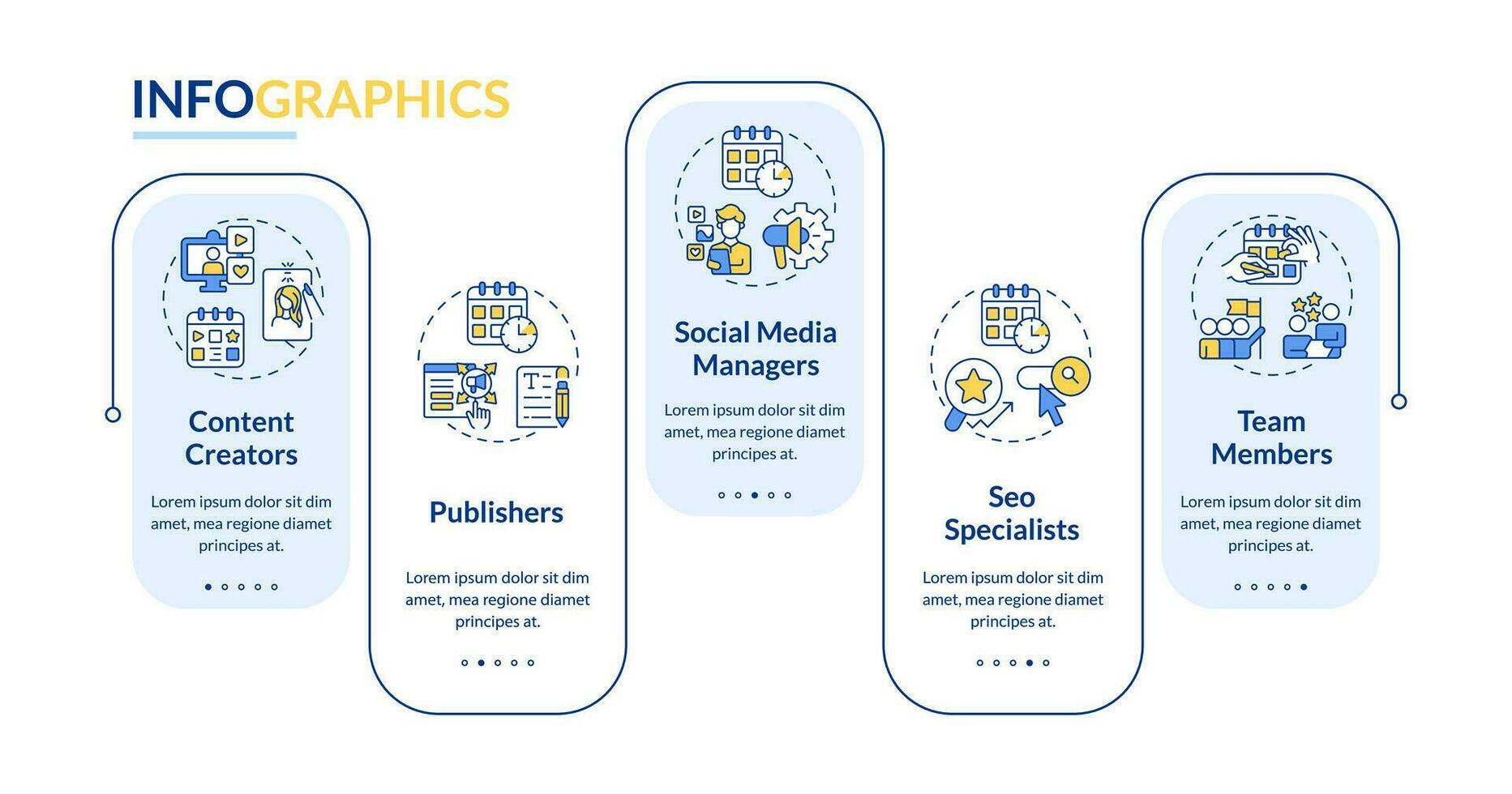 Who can use editorial calendar rectangle infographic template. Data visualization with 5 steps. Editable timeline info chart. Workflow layout with line icons Pro Vector