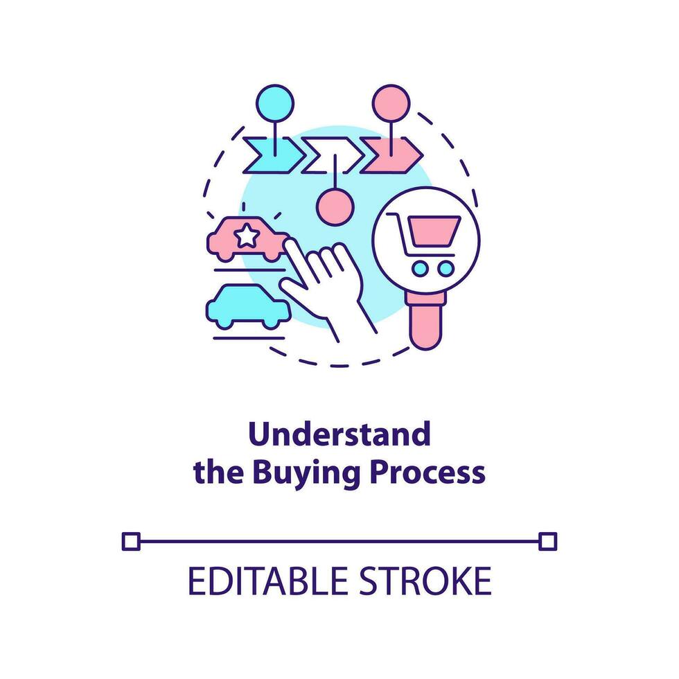 Understand buying process concept icon. Attracting new clients strategy abstract idea thin line illustration. Isolated outline drawing. Editable stroke Pro Vector