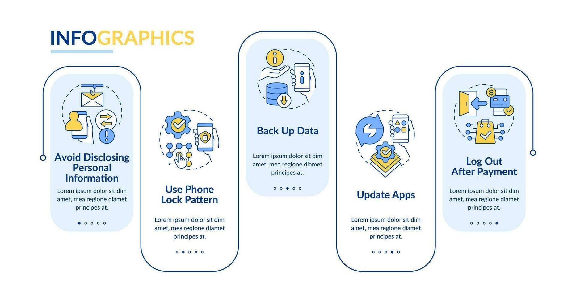Improve smartphone security rectangle infographic template. Data visualization with 5 steps. Editable timeline info chart. Workflow layout with line icons Pro Vector