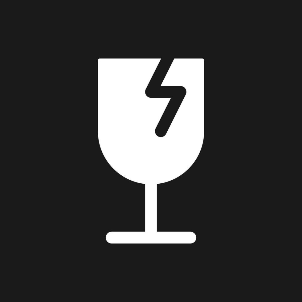 Broken wineglass dark mode glyph ui icon. Fragile package. Attention. User interface design. White silhouette symbol on black space. Solid pictogram for web, mobile. Vector isolated illustration Pro Vector