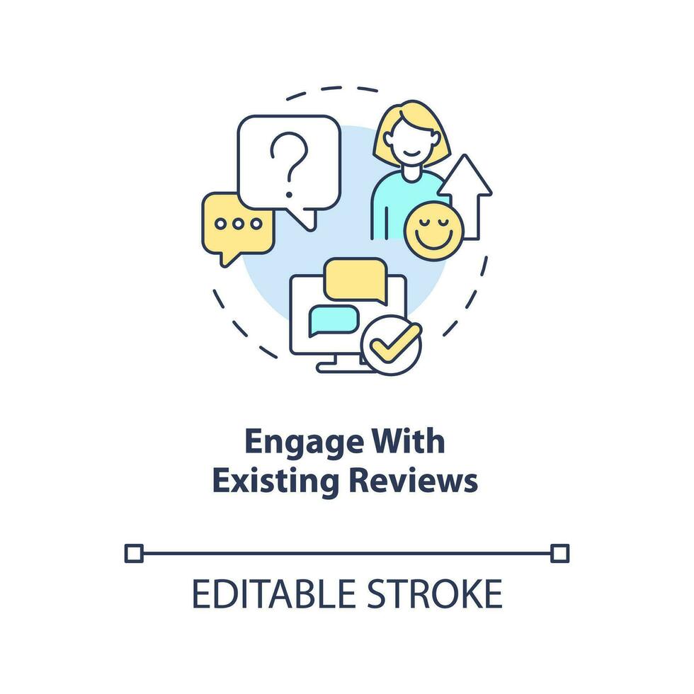 Engage with existing reviews concept icon. Encouraging clients to write feedback abstract idea thin line illustration. Isolated outline drawing. Editable stroke Pro Vector