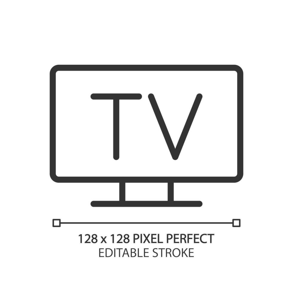 Television pixel perfect linear icon. TV broadcasting service. Analog and digital technology. Public utility. Thin line illustration. Contour symbol. Vector outline drawing. Editable stroke Pro Vector