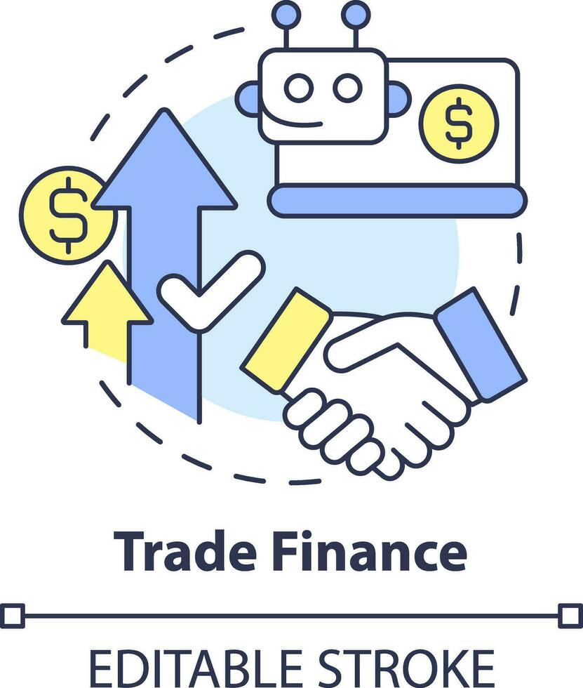 Trade finance concept icon. Automated process. Treasury management system function abstract idea thin line illustration. Isolated outline drawing. Editable stroke Pro Vector
