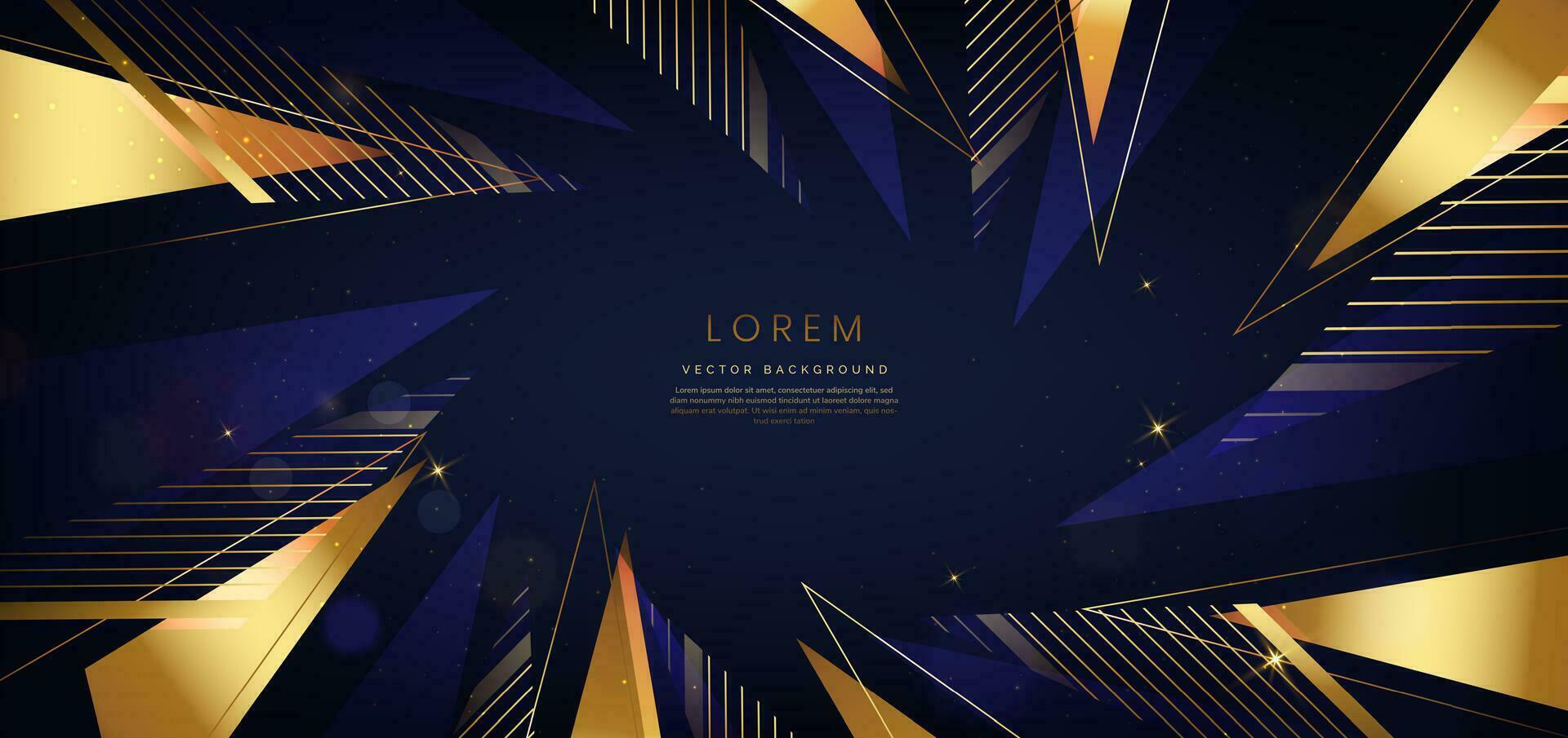 Luxury gold triangle elegant blue on dark blue background with golden lines and light effect and bokeh with copy space for text. Pro Vector