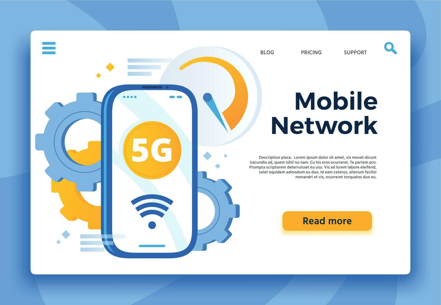 Mobile 5G network landing page. Communication system, cellular connection and fast internet for smartphone vector illustration Pro Vector