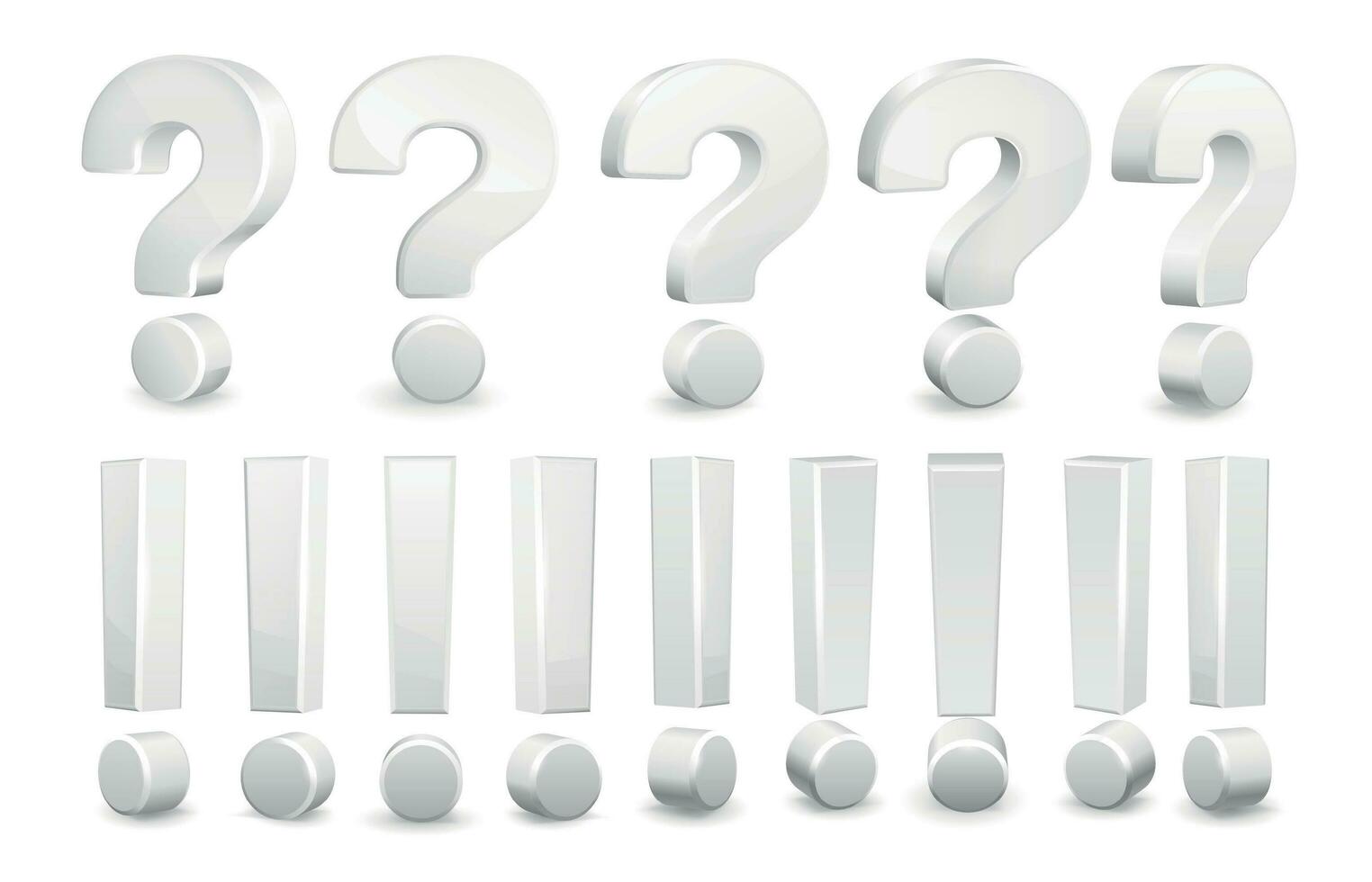 Realistic question and exclamation marks. Attention mark, questioning symbol and issue sign vector 3D illustration set Pro Vector