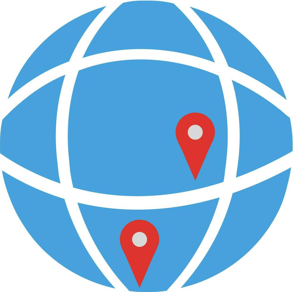 Globe with map pointers icon, location finder around the earth. Pro Vector