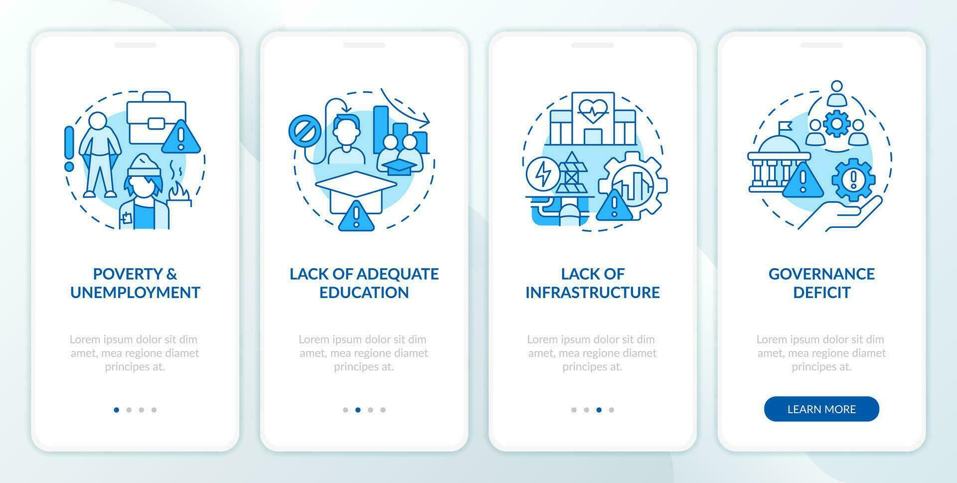 Emergence of inclusive growth blue onboarding mobile app screen. Walkthrough 4 steps editable graphic instructions with linear concepts. UI, UX, GUI template Pro Vector and Pro SVG