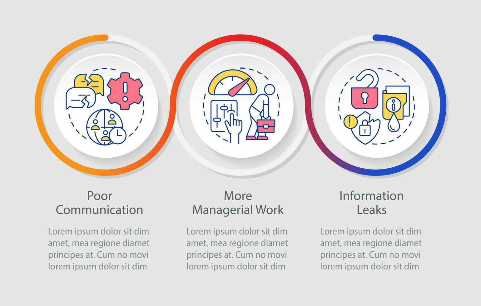 Outstaffing negative effects loop infographic template. Poor communication. Data visualization with 3 steps. Timeline info chart. Workflow layout with line icons Pro Vector