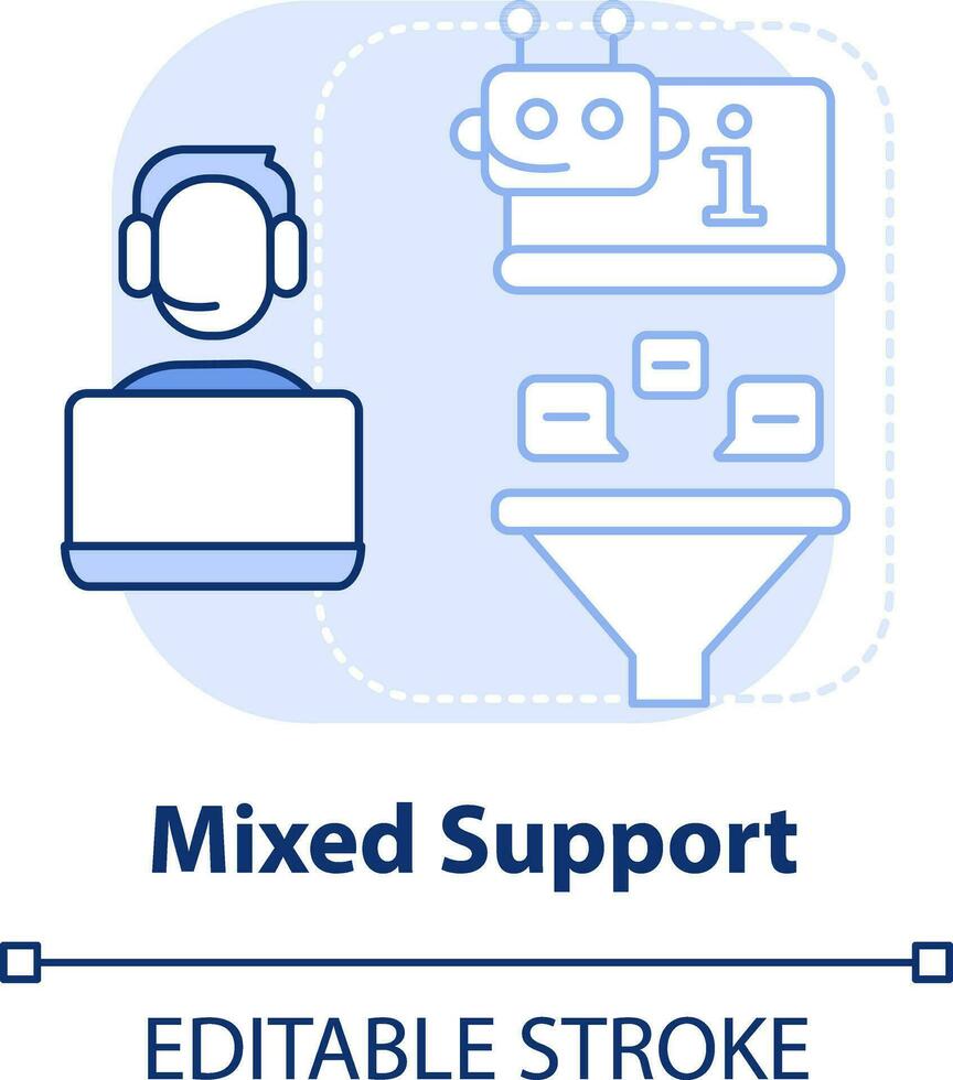 Mixed support light blue concept icon. Client engagement platform feature abstract idea thin line illustration. Isolated outline drawing. Editable stroke Pro Vector
