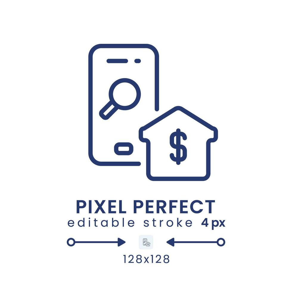 Real Estate app linear desktop icon. Homes for sale. Housing data. Apartments for rent. Pixel perfect 128x128, outline 4px. GUI, UX design. Isolated user interface element for website. Editable stroke Pro Vector