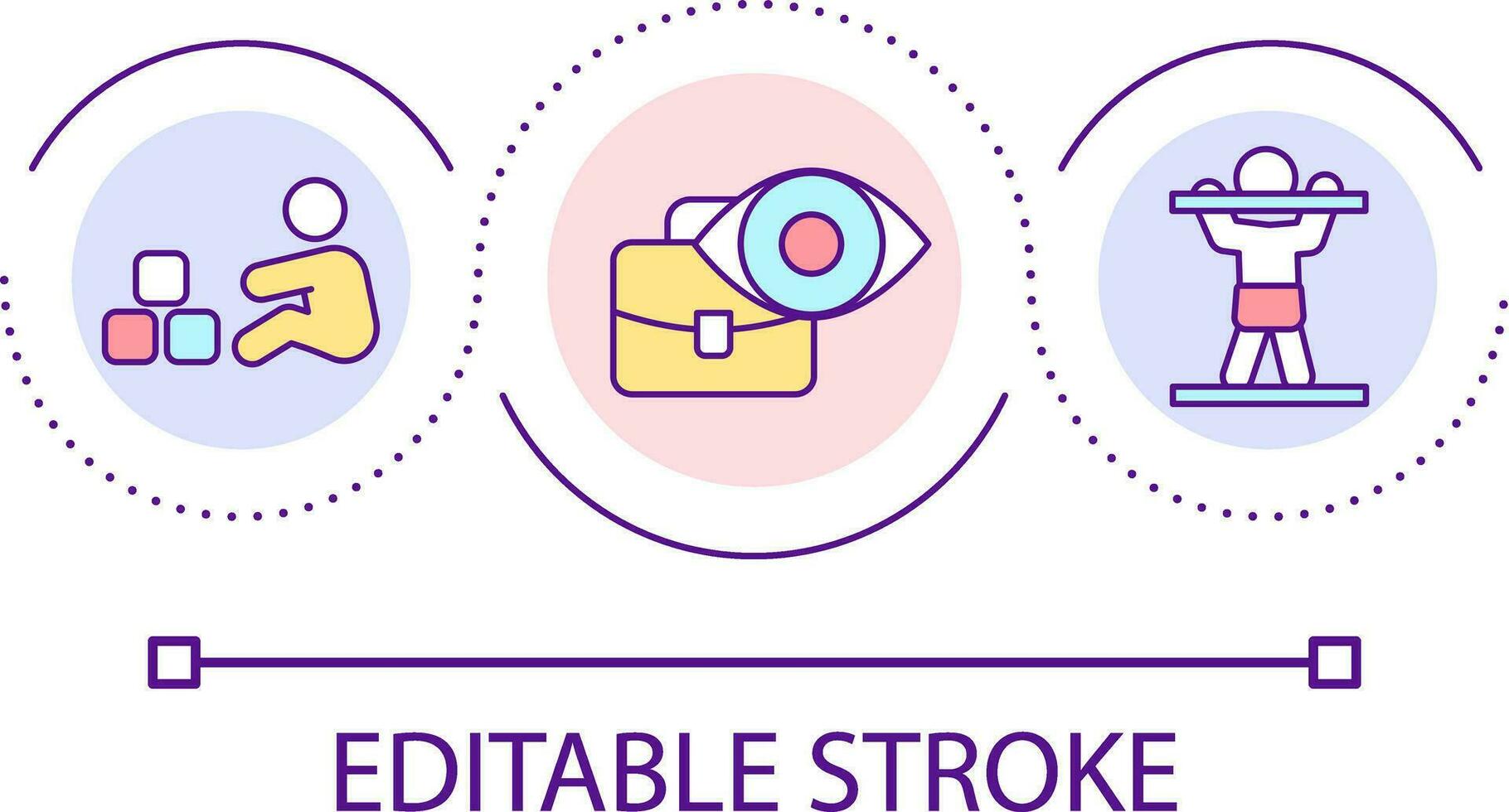 Combine childcare and work loop concept icon. Balance between family and career. Working parent abstract idea thin line illustration. Isolated outline drawing. Editable stroke Pro Vector