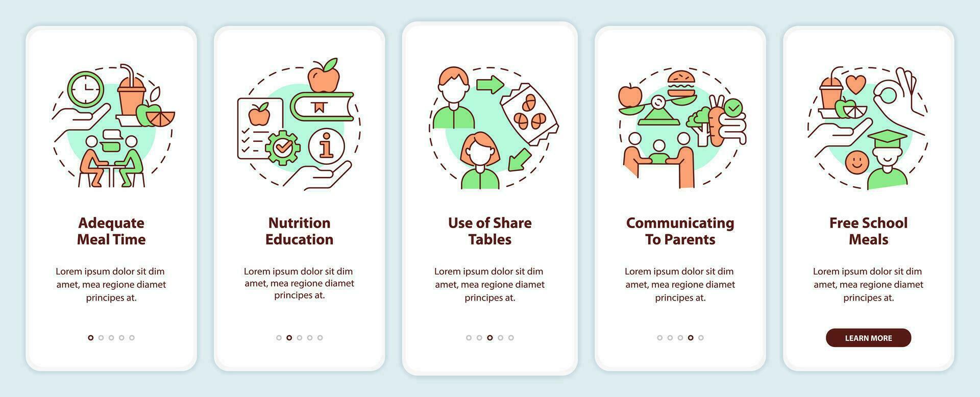 School nutrition for better mental health onboarding mobile app screen. Walkthrough 5 steps editable graphic instruction with linear concepts. UI, UX, GUI template Pro Vector