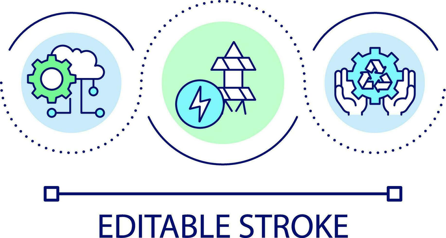 Sustainable technology and power loop concept icon. Virtual data storage. Digital cloud abstract idea thin line illustration. Isolated outline drawing. Editable stroke Pro Vector