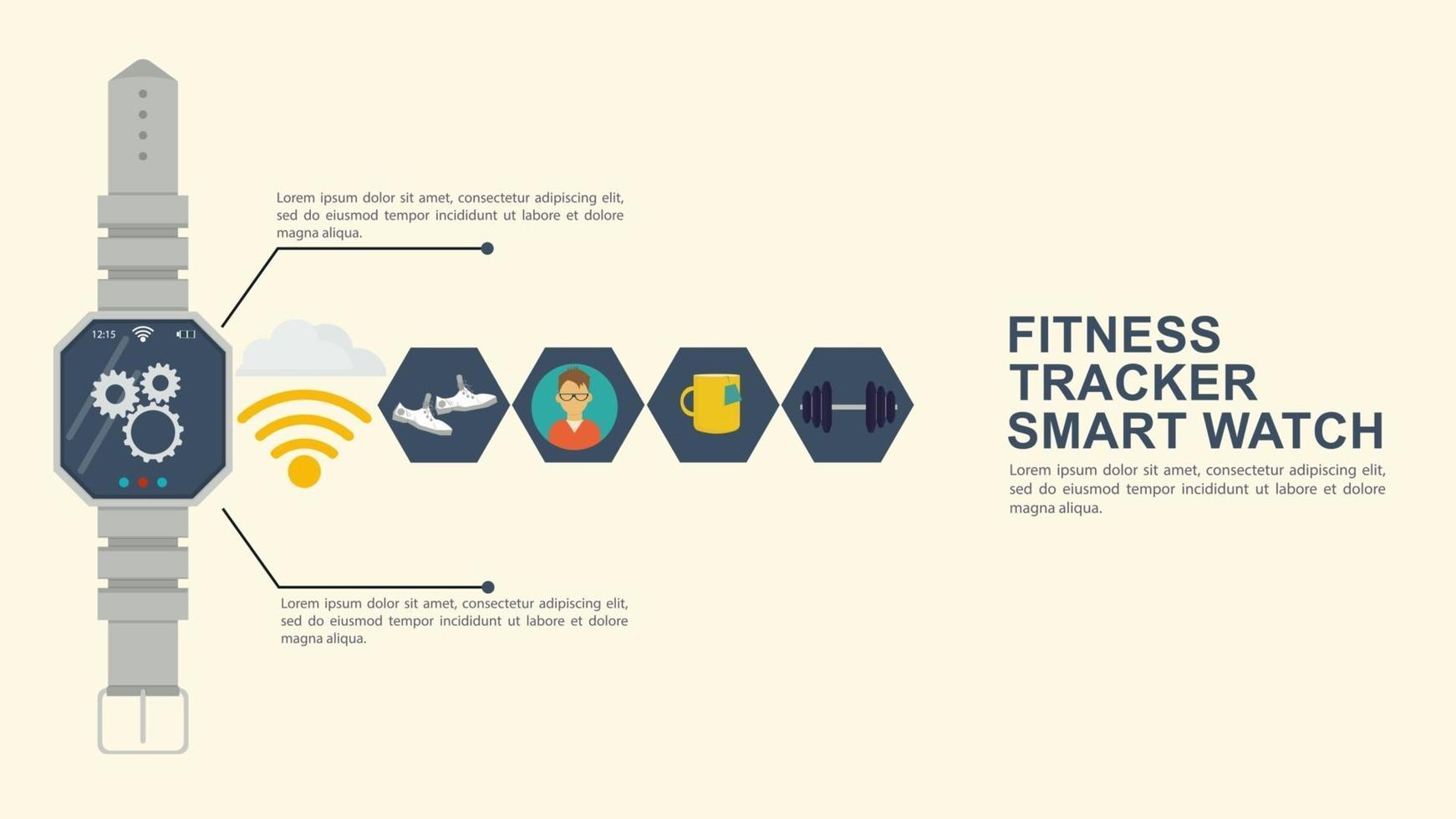 Iconography for flat design smart watch fitness tracker icons with the image of functionality actions equipment and a place to insert text Pro Vector