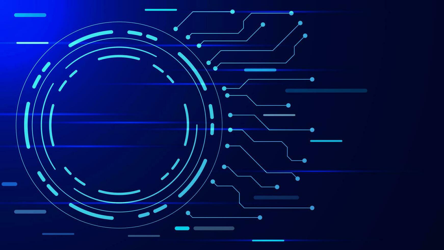 Abstract futuristic technology with hud and electronic circuit board. Digital big data visualization, network connection and communication technology background. Vector illustration. Pro Vector