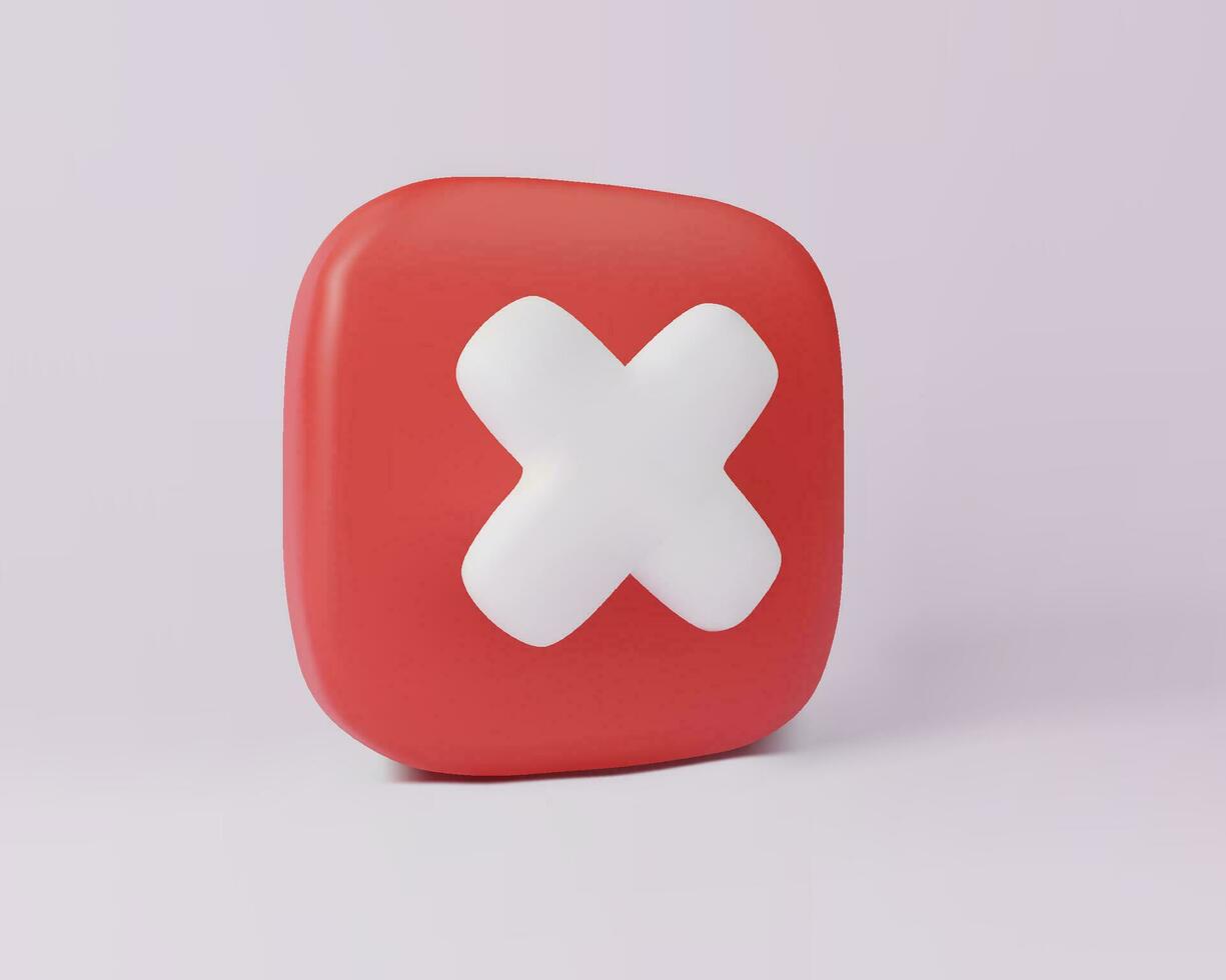 3d render icon of Red cross checkmark button. Cancel sign Pro Vector