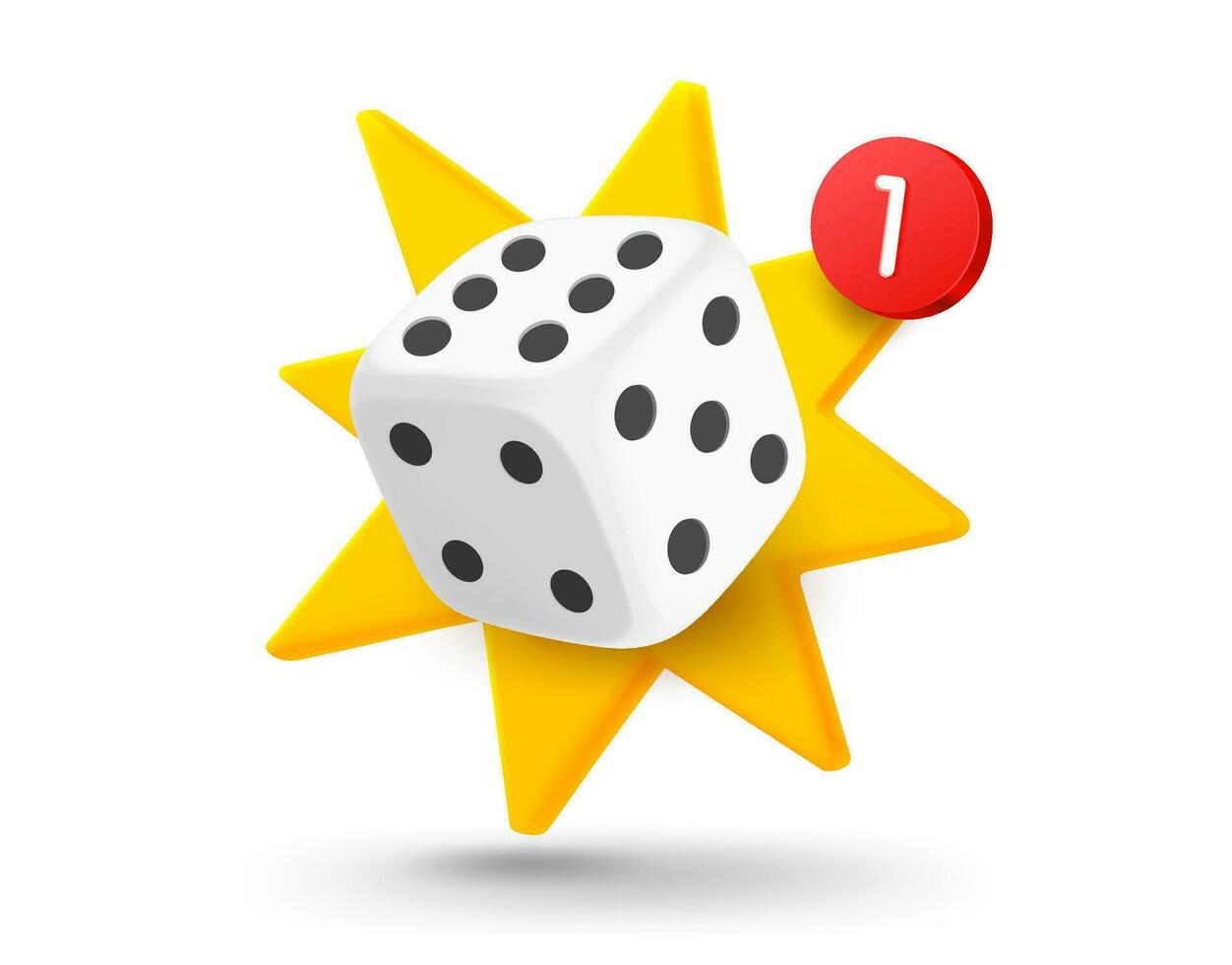 Dice with explosion effect. 3d vector mobile application icon with notification Pro Vector