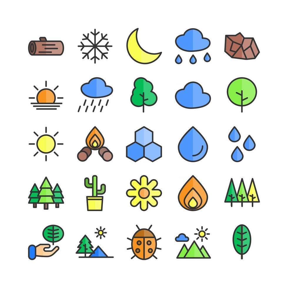 Nature icon set vector flat line for website mobile app presentation social media Suitable for user interface and user experience Pro Vector