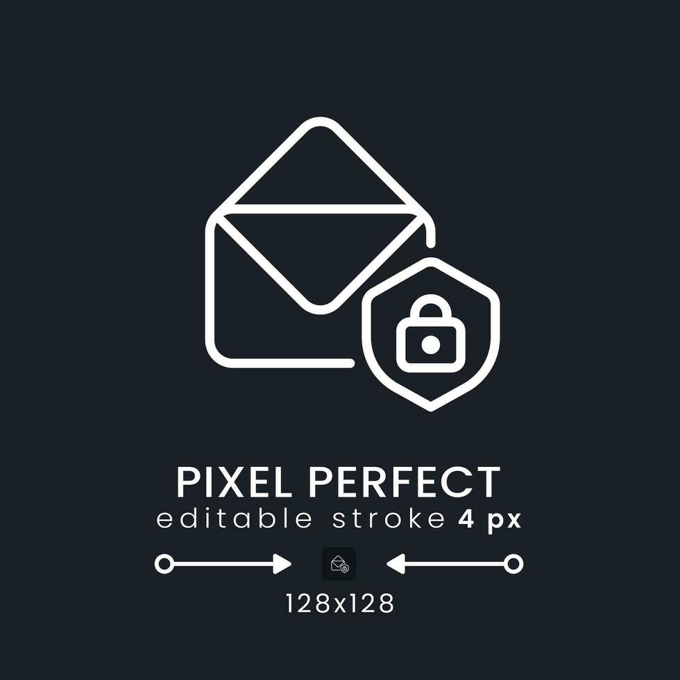 Email security white linear desktop icon on black. Account protection. Prevent unauthorized access. Pixel perfect 128x128, outline 4px. Isolated user interface symbol for dark theme. Editable stroke Pro Vector