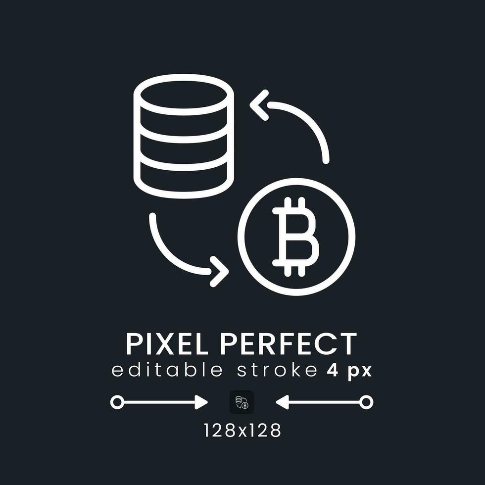 Tokenization white linear desktop icon on black. Sensitive data security. Blockchain technology. Pixel perfect 128x128, outline 4px. Isolated user interface symbol for dark theme. Editable stroke Pro Vector