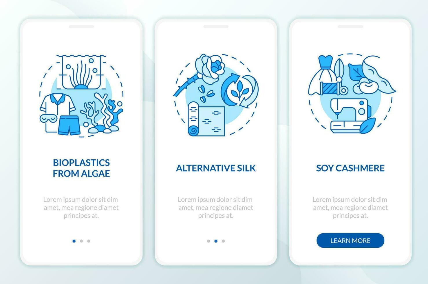 Bio based materials in fashion blue onboarding mobile app screen. Walkthrough 3 steps editable graphic instructions with linear concepts. UI, UX, GUI templated Pro Vector and Pro SVG