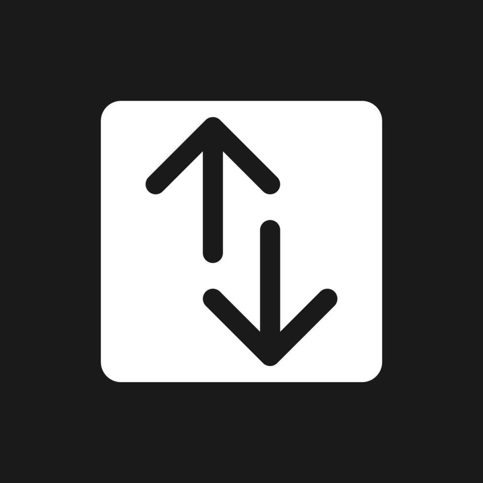 Up and down directions dark mode glyph ui icon. News feed scrolling. User interface design. White silhouette symbol on black space. Solid pictogram for web, mobile. Vector isolated illustration Pro Vector