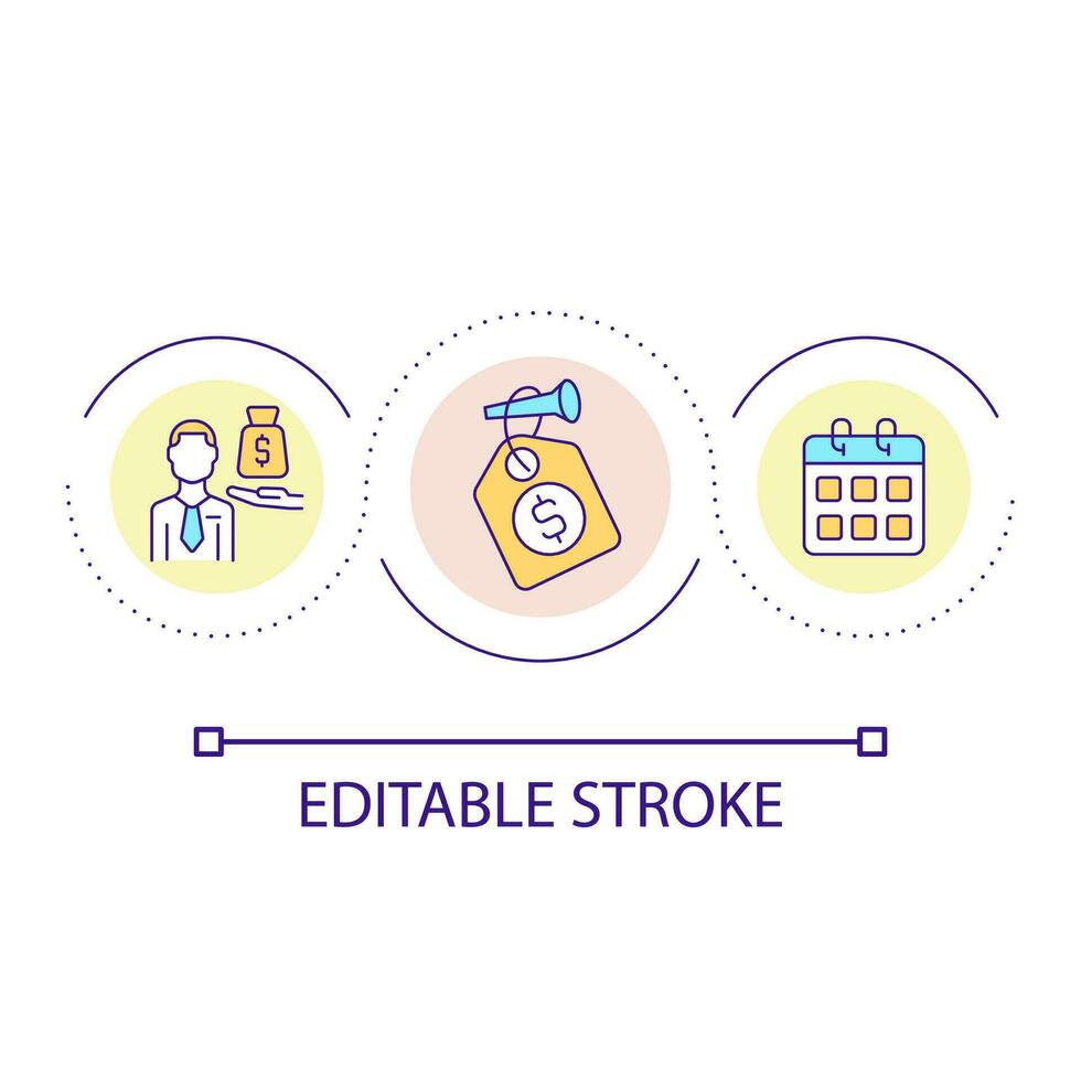 Regular payments loop concept icon. Fixed dividends. Debt paying. Credit and loan for business abstract idea thin line illustration. Isolated outline drawing. Editable stroke Pro Vector