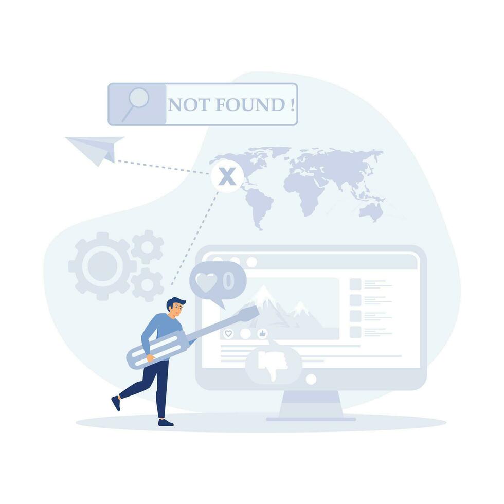 Blog promotion mistake. Inefficient SEO optimization. Idea of search engine optimization for blog promotion, flat vector modern illustration Pro Vector