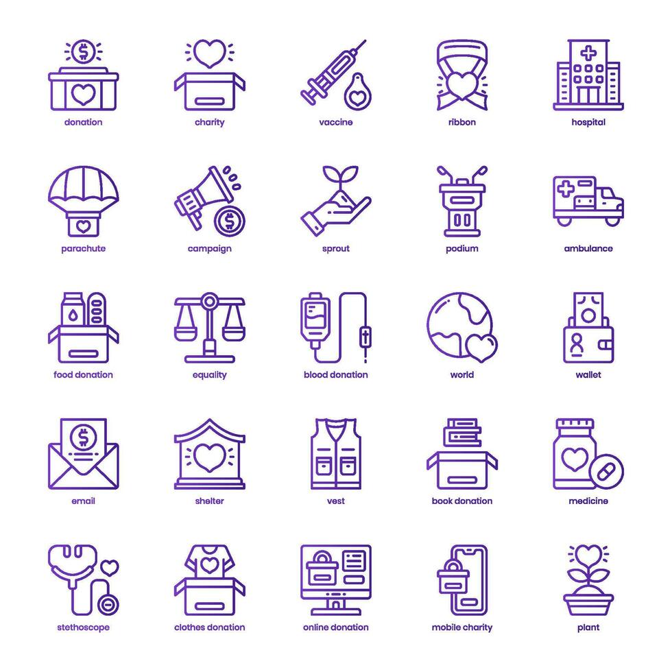 Charity icon pack for your website design, logo, app, and user interface. Charity icon basic line gradient design. Vector graphics illustration and editable stroke. Pro Vector and Pro SVG