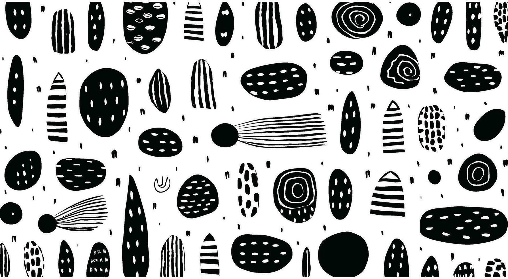 drawing design with hand drawing doodle dots on white stock vector, in the style of prehistoric art, ogham scripts, juxtaposition of shapes, carpetpunk, whimsical figurative, abstract Pro Vector