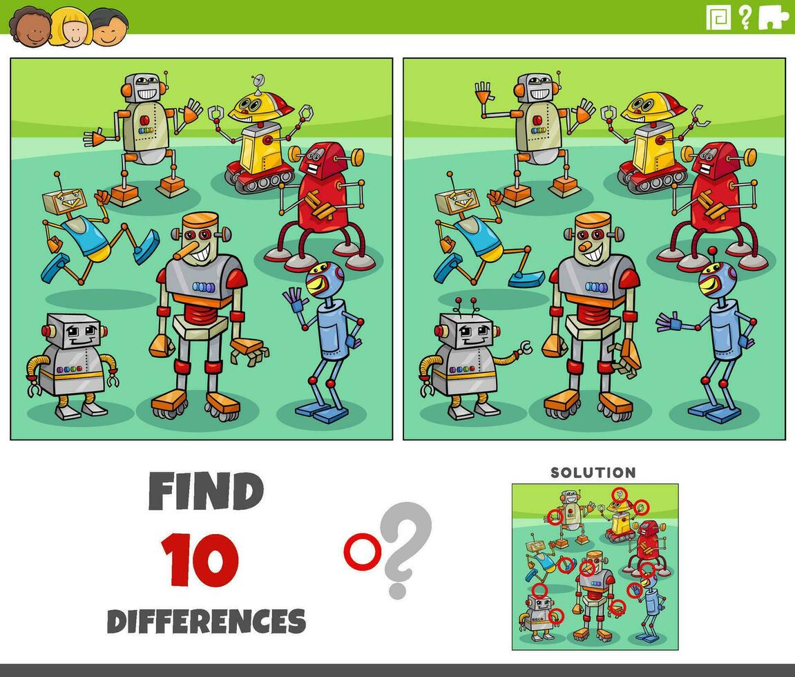 differences game with cartoon robots characters Pro Vector