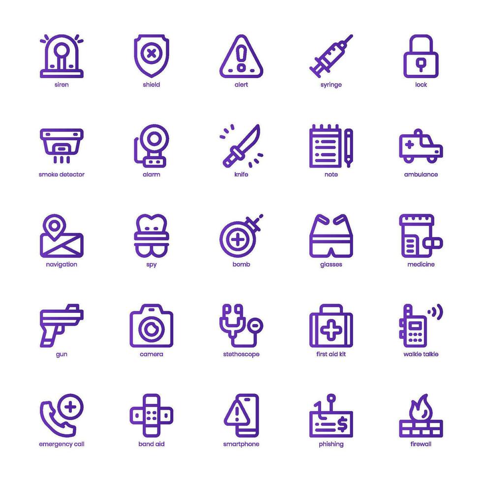Security and Service Icon pack for your website design, logo, app, and user interface. Security and Service Icon basic line gradient design. Vector graphics illustration and editable stroke. Pro Vector and Pro SVG