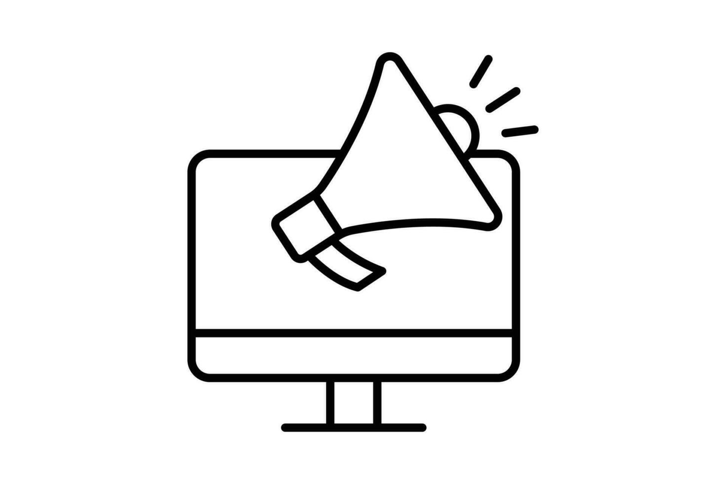 Digital marketing icon. Monitor screen with megaphone. Line icon style design. Simple vector design editable Pro Vector