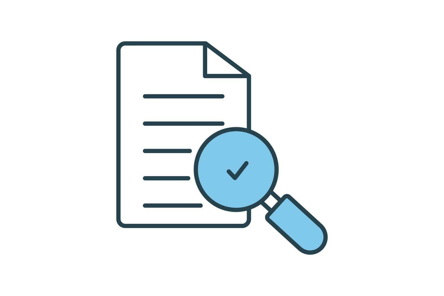 Traceability icon. Magnifying glass with document. icon related to Find, Search. Flat line icon style design. Simple vector design editable Pro Vector