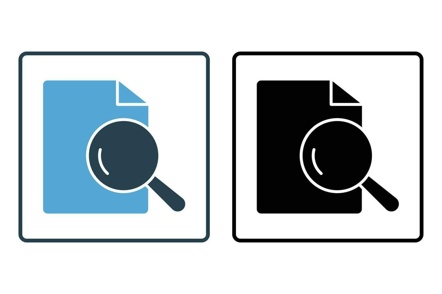 Document search Icon. search file, Magnifying Glass with document. Solid icon style design. Simple vector design editable Pro Vector