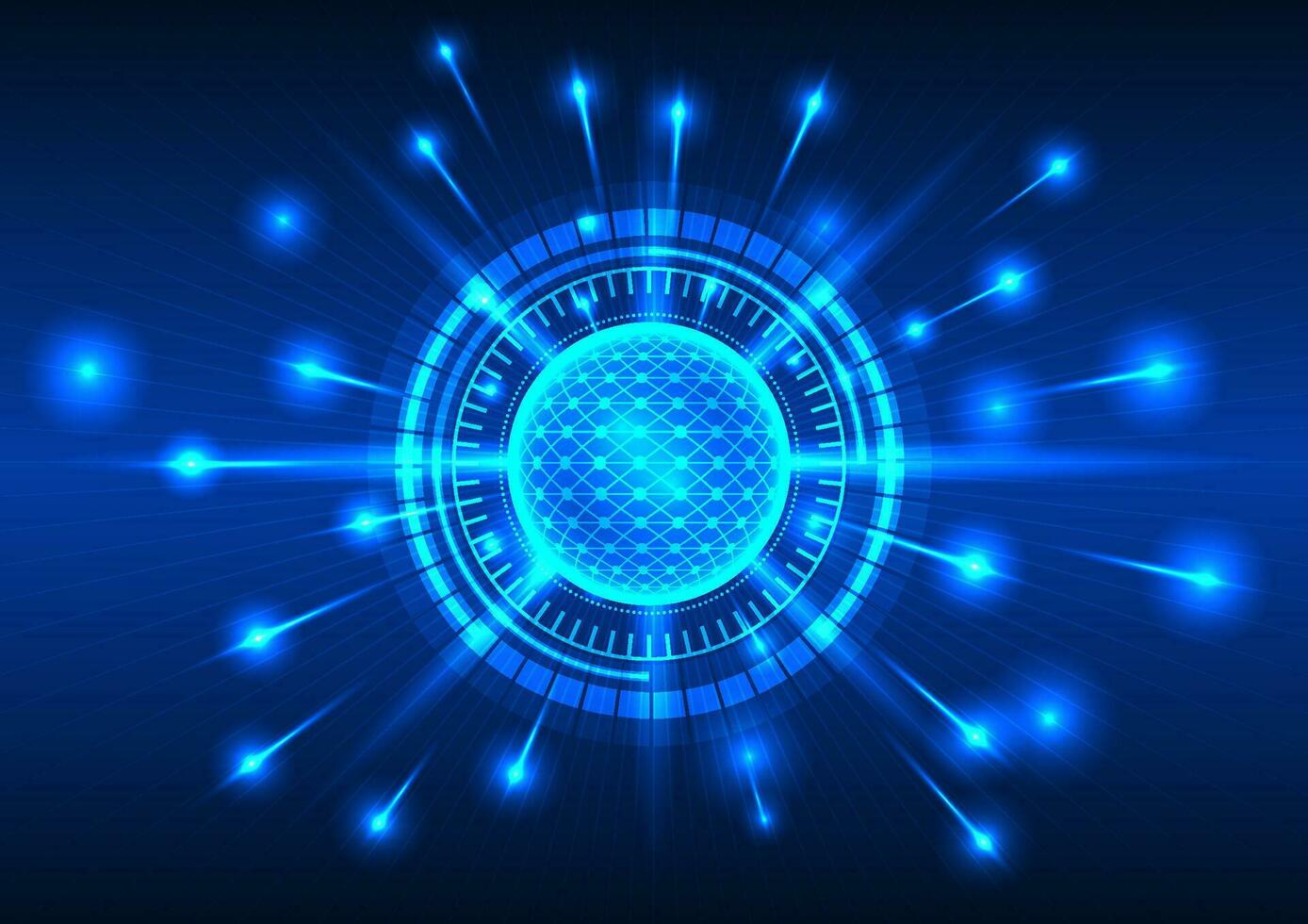 Technology processor with technology circle That keeps processing the received data of the system and sends it to the operating system to continue working with a media beam to export data Pro Vector