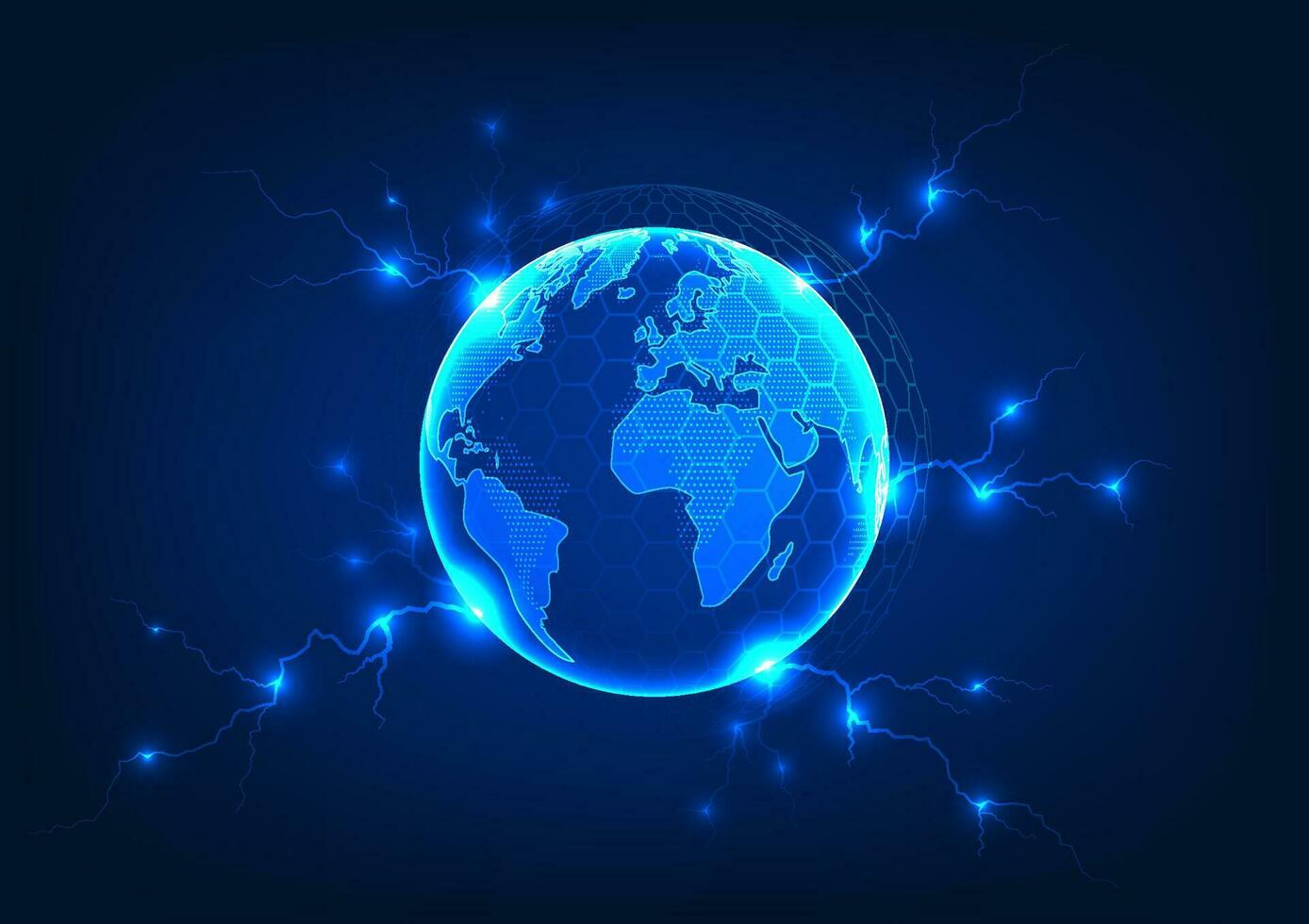 World network connection technology Refers to the connection to the Internet network that covers the whole world. used to transmit data with a high-speed signal There are lightning bolts Pro Vector