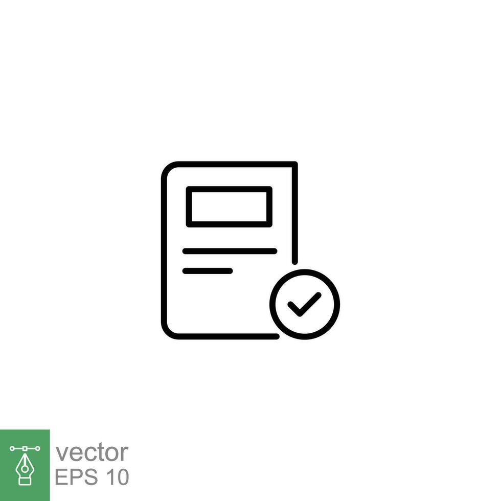 Book check mark icon. Simple outline style. Learning, knowledge, library, checkmark, education concept. Thin line symbol. Vector illustration isolated on white background. EPS 10. Pro Vector
