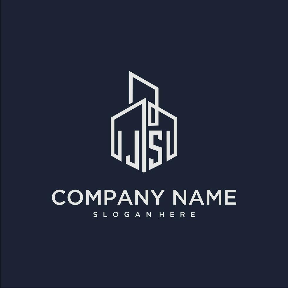 JS initial monogram logo for real estate with building style Pro Vector and Pro SVG