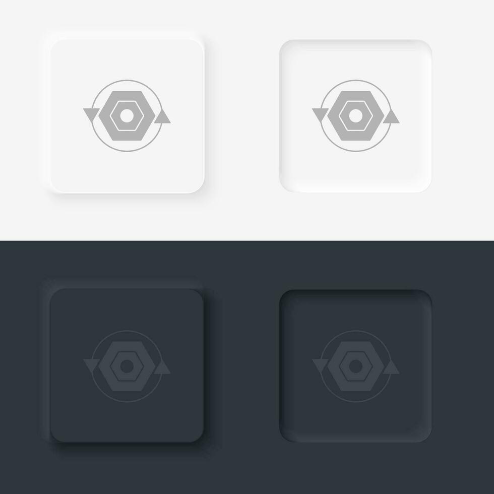 Bioinformatics, neomorphism style, vector icon with button. On black and white background Pro Vector