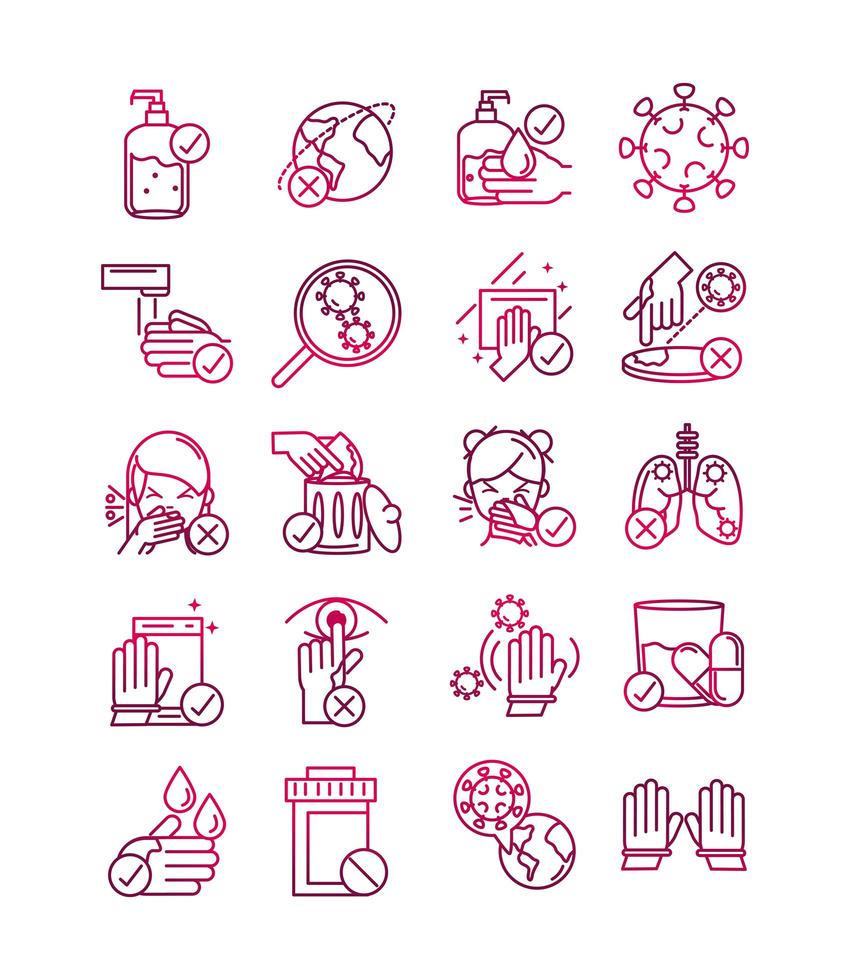 avoid and prevent spread of covid19 icons set gradient icon vector