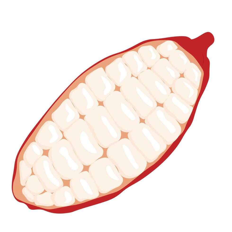 Cocoa beans . Vector stock illustration. Chocolate. Fresh cocoa fruits with half sliced. isolated on white background. Pro Vector