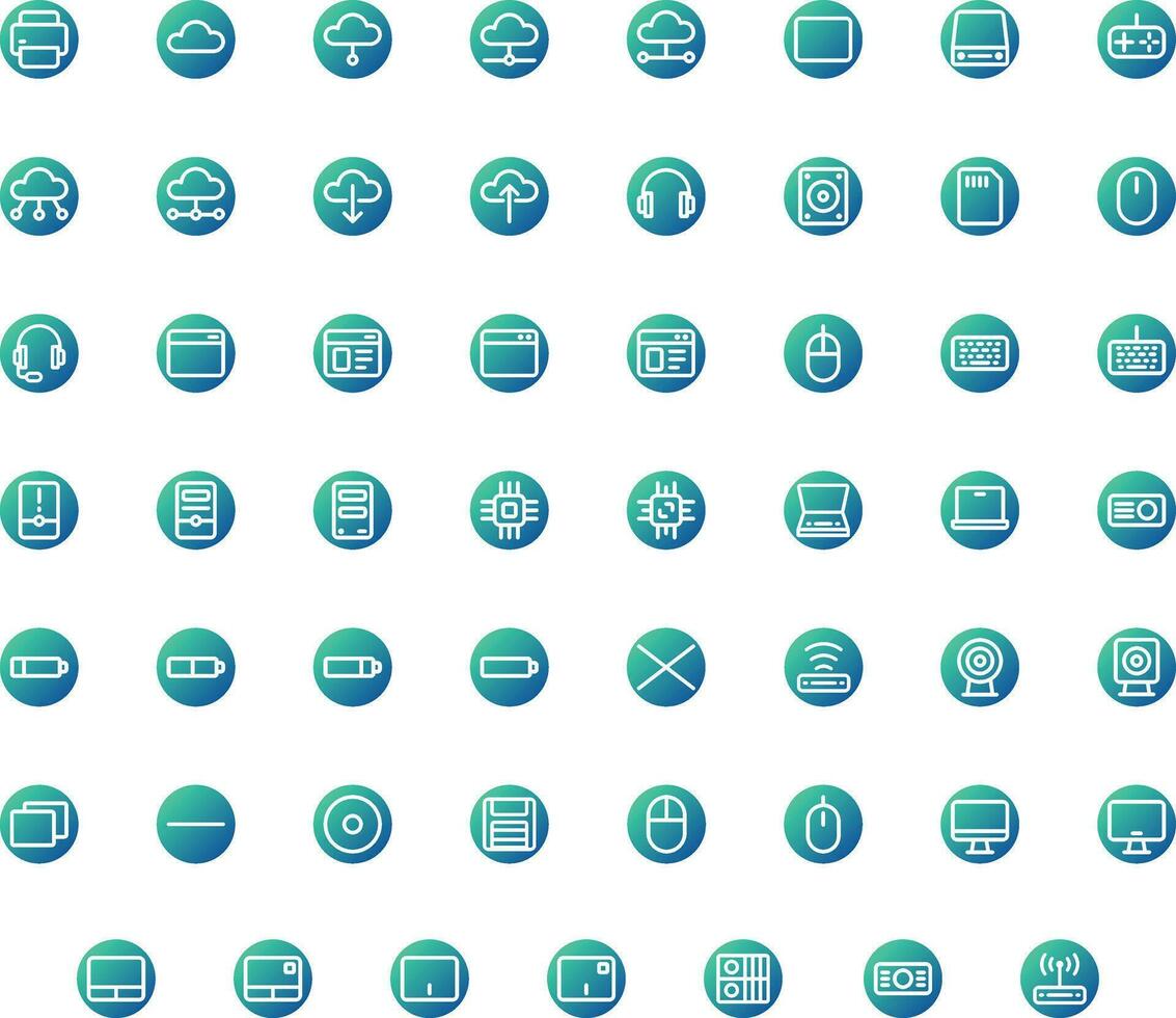 Vector of Computer and IT Icon Set Round Gradient. Perfect for user interface, new application. Pro Vector
