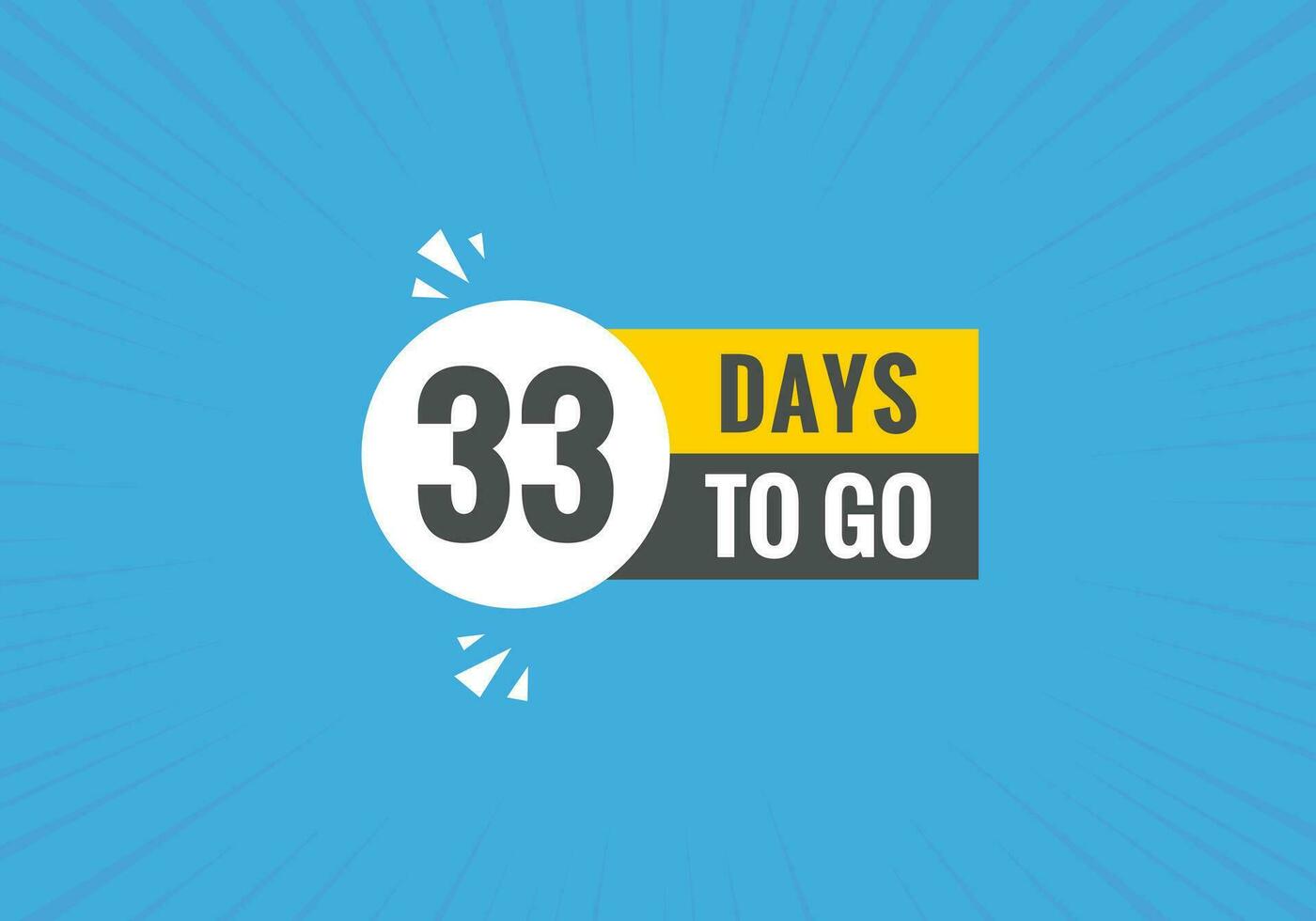 33 days to go text web button. Countdown left 33 day to go banner label Pro Vector