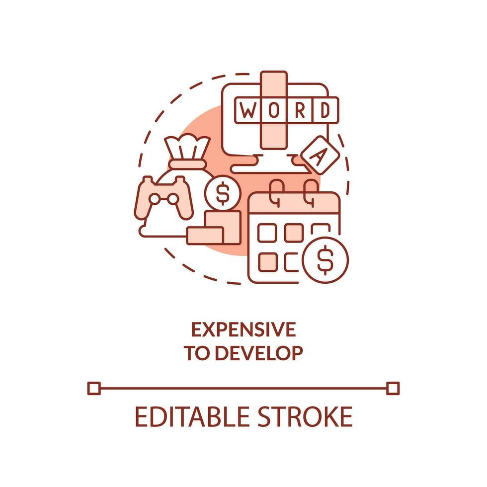 Expensive to develop terracotta concept icon. Gamification challenges in e learning abstract idea thin line illustration. Isolated outline drawing. Editable stroke Pro Vector
